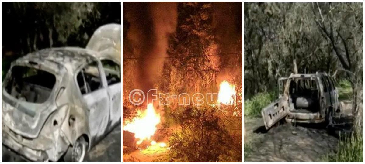 Φωτογραφία της στιγμής που τα δύο αυτοκίνητα καίγονται από το filadelfia-xalkidona.gr
