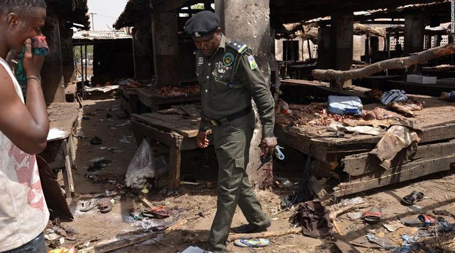 Ένας άνδρας και δύο γυναίκες ανατίναξαν τα εκρηκτικά με τα οποία ήταν ζωσμένοι όταν τους εμπόδισε να προχωρήσουν ένα μέλος της Civilian JTF, μιας εγκεκριμένης από την κυβέρνηση πολιτοφυλακής, λίγο έξω από τη Μαϊντουγκούρι, την πόλη που έχει πληγεί χειρότερα από κάθε άλλη στη Νιγηρία από την εξέγερση της τζιχαντιστικής οργάνωσης Μπόκο Χαράμ που διαρκεί οκτώ χρόνια.
