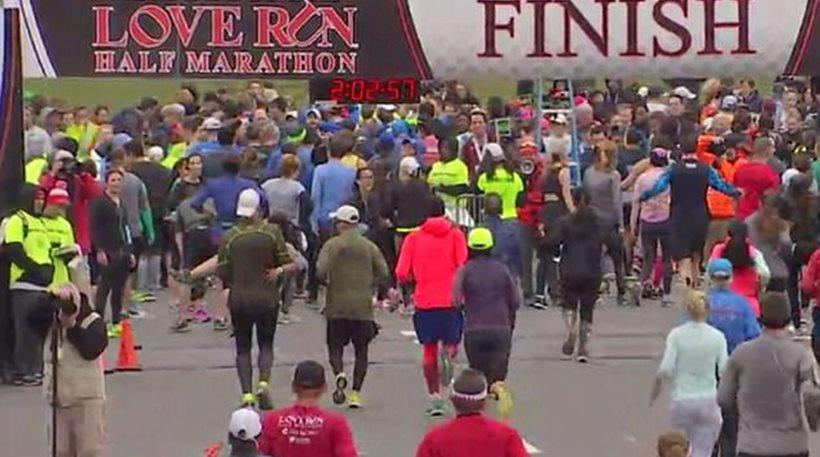 Όταν οι δρομείς πέρασαν «έκοψαν την κορδέλα» του τερματισμού παρέδωσαν τη γυναίκα στους τραυματιοφορείς που την μετέφεραν σε καροτσάκι για να της δώσουν τις πρώτες βοήθειες.