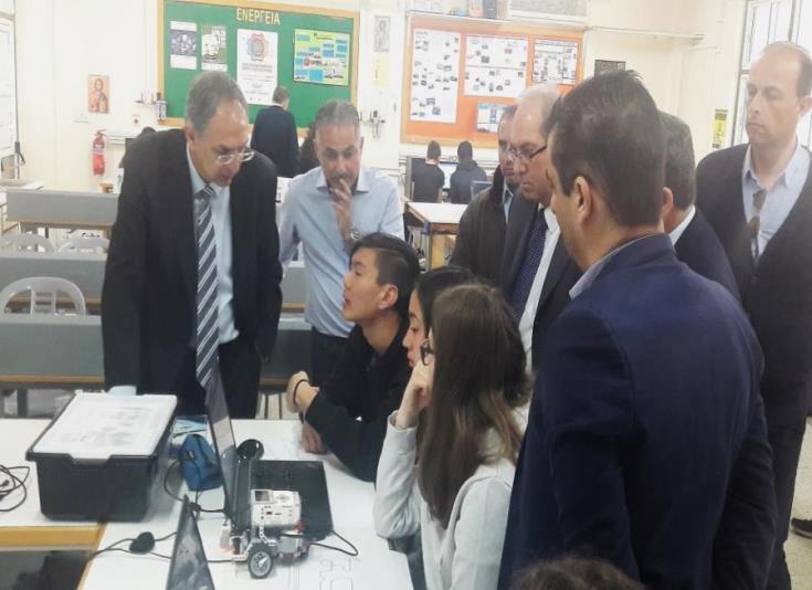 Σύμφωνα με ανακοίνωση του ΓΤΠ, στο πλαίσιο των Νέων Ωρολόγιων Προγραμμάτων αλλά και των νέων τεχνολογιών που έχουν εισαχθεί στο μάθημα Σχεδιασμός και Τεχνολογία, ο Υπουργός παρακολούθησε δειγματικό μάθημα σε μαθητές της Α΄ Λυκείου.