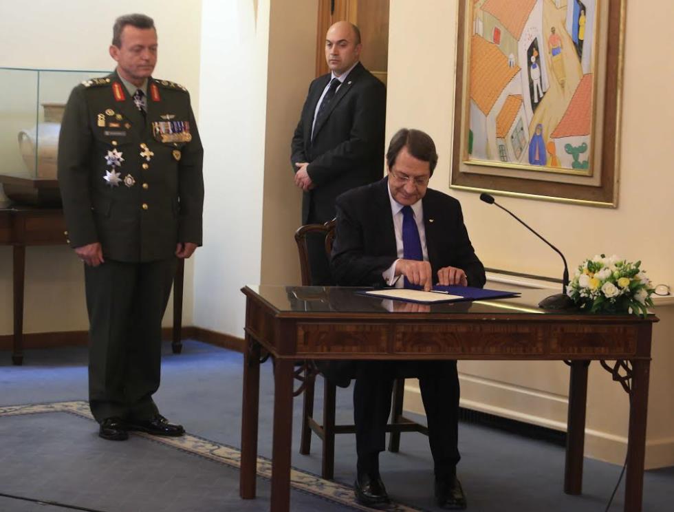 Πραγματοποιήθηκε στο Προεδρικό η τελετή διαβεβαίωσης του νέου Αρχηγού της Εθνικής Φρουράς Αντιστράτηγου Ηλία Λεοντάρη, με τον Πρόεδρο της Δημοκρατίας να κάνει ειδική αναφορά στις μεταρρυθμίσεις που γίνονται στο Υπουργείο Άμυνας και την Εθνική Φρουρά και στην αναβάθμιση του ρόλου των ένοπλων δυνάμεων μέσα από μια νέα αμυντική διπλωματία.
