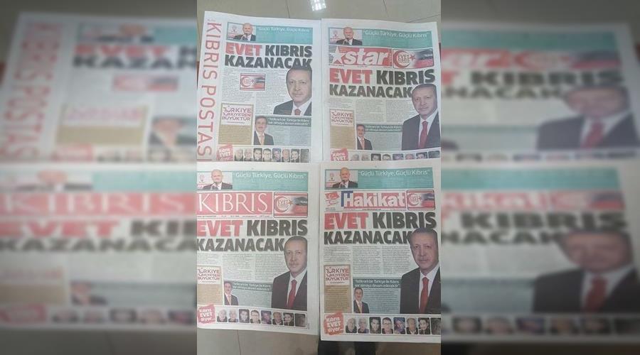 Βγήκαν με το ίδιο πληρωμένο πρωτοσέλιδο τέσσερις τουρκοκυπριακές εφημερίδες