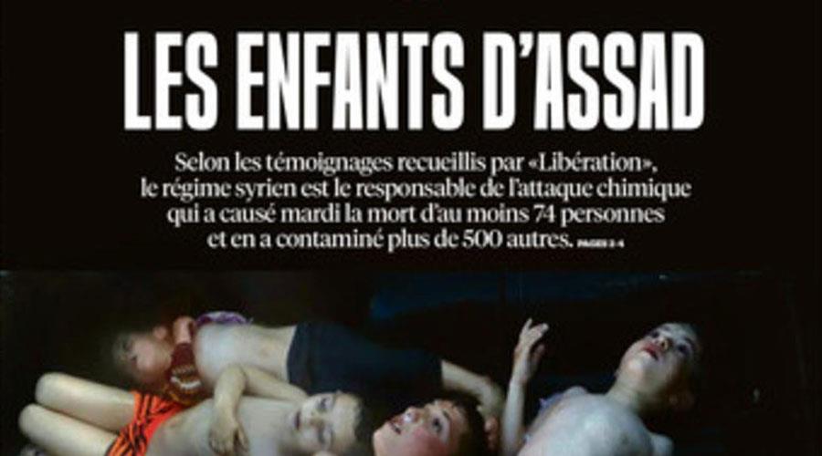 Με τις εικόνες από την επίθεση με χημικά στη Συρία να κάνουν τον γύρο του κόσμου και να προκαλούν παγκόσμιο σοκ και διεθνή κατακραυγή, η γαλλική εφημερίδα παρουσιάζει μια φωτογραφία με τα άψυχα κορμιά των παιδιών, θύματα της θηριωδίας.