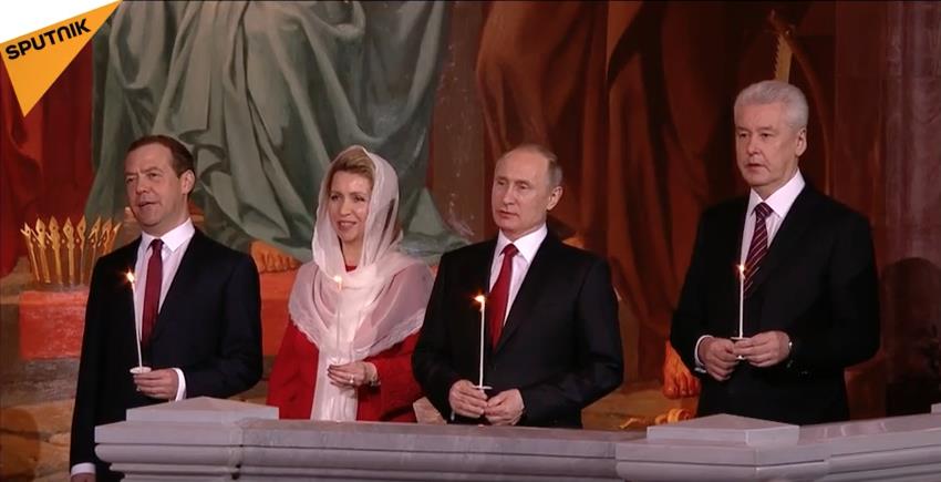 Ο Βλαντιμίρ Πούτιν στο 36ο λεπτό ακούγεται να αντεύχεται στο «Χριστός Ανέστη», «Αληθώς Ανέστη».