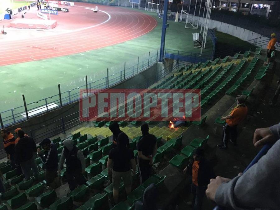 Σύμφωνα με δημοσιογράφο του Ρεπόρτερ που βρισκόταν στο γήπεδο, ενώ βρισκόταν σε εξέλιξη ο αγώνας οι αστυνομικοί έκαναν "ντου" στη δυτική κερκίδα του ΑΠΟΕΛ με αποτέλεσμα να ακολουθήσουν συμπλοκές και ξύλο ανάμεσα σε οπαδούς και αστυνομικούς.