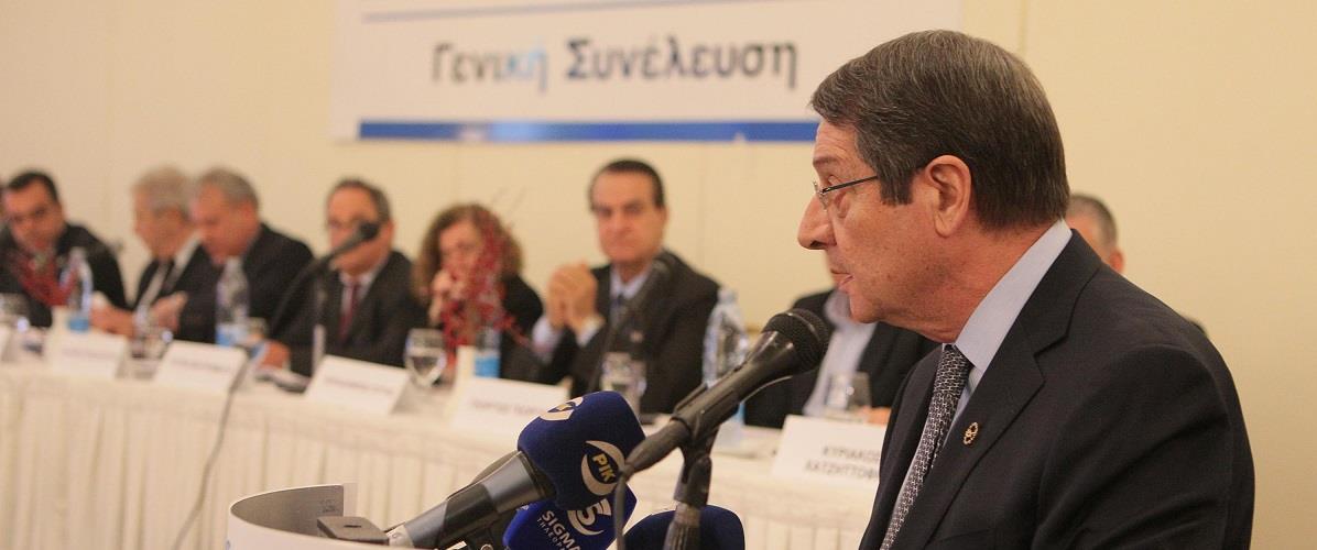 Σε χαιρετισμό του στην 32η Ετήσια Γενική Συνέλευση της Ένωσης Δήμων Κύπρου, ο Πρόεδρος Αναστασιάδης είπε ότι στο Κυπριακό “παρατηρείται συναντίληψη σε σημαντικό αριθμό θεμάτων” και ότι “υπήρξε πρόοδος σε ένα αριθμό θεμάτων”.