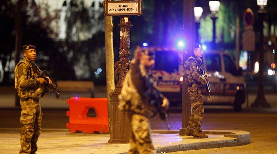 Η πλατεία λεωφόρος που οδηγεί μακριά από την Αψίδα Θριάμβου ήταν κατάμεστη με Παριζιάνους και τουρίστες που χαίρονταν την ανοιξιάτικη βραδιά, αλλά η αστυνομία εκκένωσε γρήγορα την περιοχή που παρέμεινε άδεια μέσα στη νύχτα εκτός από τους βαριά οπλισμένους αστυνομικούς και τα περιπολικά της αστυνομίας.