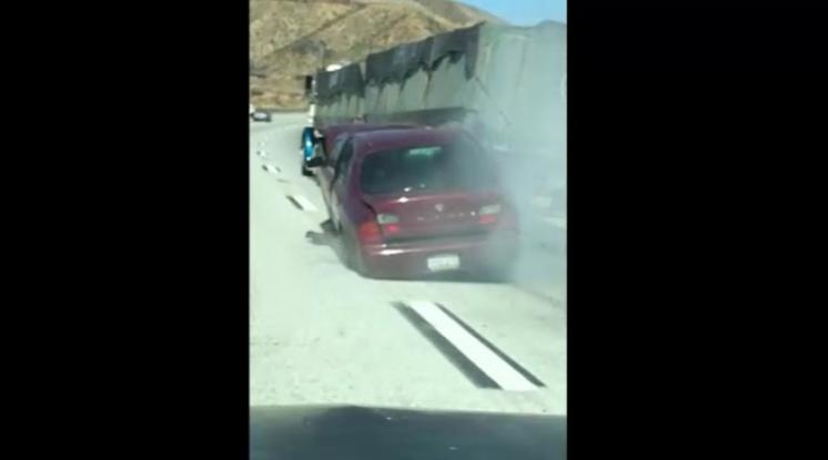 Για πάνω από έξι χιλιόμετρα ο οδηγός ενός φορτηγού έσερνε μαζί του ένα αυτοκίνητο που είχε σφηνώσει σε ένα από τα ρυμουλκούμενα τρέιλέρ του, στην Καλιφόρνια.