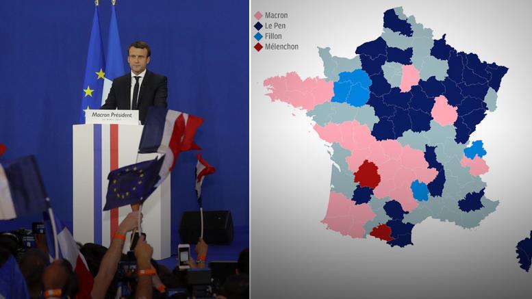 Δεν προκαλεί έκπληξη το γεγονός ότι τα μεγάλα αστικά κέντρα και οι πιο εύπορες πόλεις ψήφισαν Μακρόν. Αντιθέτως η Λεπέν κέρδισε σε περιοχές με υψηλή ανεργία και χαμηλούς μισθούς. Ο Μακρόν κυριάρχησε σε περιοχές πιο δυναμικές οικονομικά και μεγάλες πόλεις όπως το Παρίσι και το Μπορντό όπου η φιλική με τις επιχειρήσεις και η κοινωνικά προοδευτική πλατφόρμα του έπεισαν τους μορφωμένους ψηφοφόρους. Στο Παρίσι, ο υποψήφιος του κινήματος «Εμπρός!» πήρε 34,83% των ψήφων ενώ η Μαρίν Λεπέν μόλις 4,99%. Ακόμη και στο 15ο διαμέρισμα του Παρισιού, το οποίο παραδοσιακά ψηφίσει Δεξιά, ο Εμανουέλ Μακρόν ήρθε πρώτος και δεύτερος ο Μελανσόν. Μόνο στο 16ο διαμέρισμα του Παρισιού ο Φιγιόν σάρωσε με 58,45%. Το μεγαλύτερο ποσοστό πήρε ο Μακρόν στο 3ο διαμέρισμα του Παρισιού, με 45,04%. Ο Μελανσόν ήρθε πρώτος στα λαϊκά και μεσαία διαμερίσματα 18ο και 19ο.