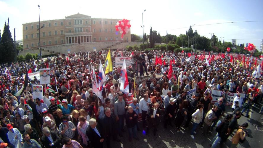 Το ΠΑΜΕ, που είναι το εργατικό συνδικάτο που πρόσκειται στο Κομμουνιστικό Κόμμα, έκανε τη δική του συγκέντρωση στη Πλατεία Συντάγματος. Στη συνέχεια οι συμμετέχοντας σε αυτήν πορεύτηκαν προς την αμερικανική πρεσβεία, φωνάζοντας αντικαπιταλιστικά συνθήματα. Μεγάλη περιγράφεται και η συγκέντρωση του ΠΑΜΕ στη Θεσσαλονίκη, κατά την οποία οι επικεφαλής της πορείας κρατούσαν μεγάλα στεφάνια από λευκά και κόκκινα γαρύφαλλα.