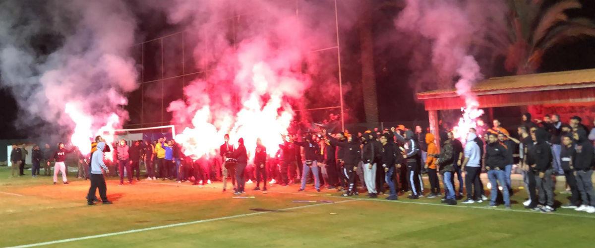 Οι οργανωμένοι των γαλαζοκιτρίνων μαζεύτηκαν και δημιούργησαν ατμόσφαιρα γηπέδου, έτσι ώστε να δώσουν ψυχολογικό αβαντάζ στους παίκτες των πρωταθλητών.