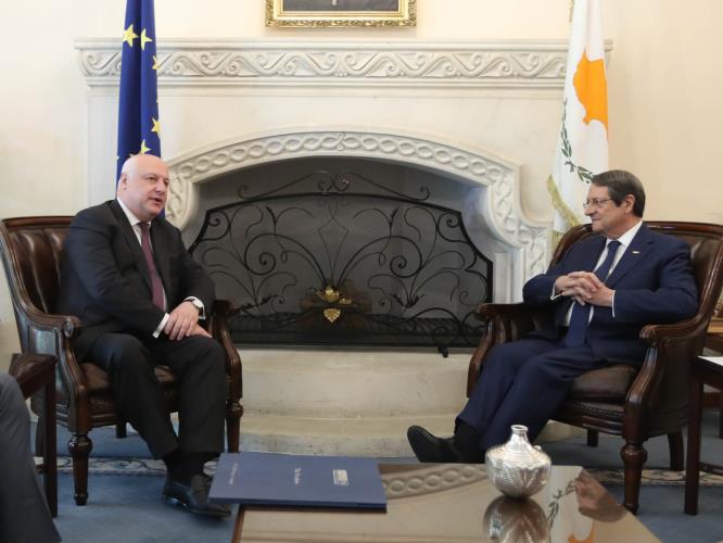 Ο Πρόεδρος της Δημοκρατίας κ. Νίκος Αναστασιάδης δέχθηκε σήμερα, στο Προεδρικό Μέγαρο, τον Πρόεδρο της Κοινοβουλευτικής Συνέλευσης του Οργανισμού για την Ασφάλεια και τη Συνεργασία στην Ευρώπη (ΚΣ ΟΑΣΕ) κ. George Tsereteli.