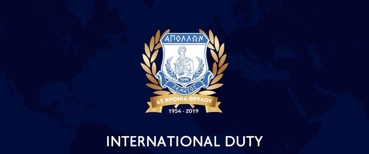 Στα πεπραγμένα των διεθνών του ποδοσφαιριστών το προηγούμενο διάστημα αναφέρεται αναλυτικά ο Απόλλωνας.