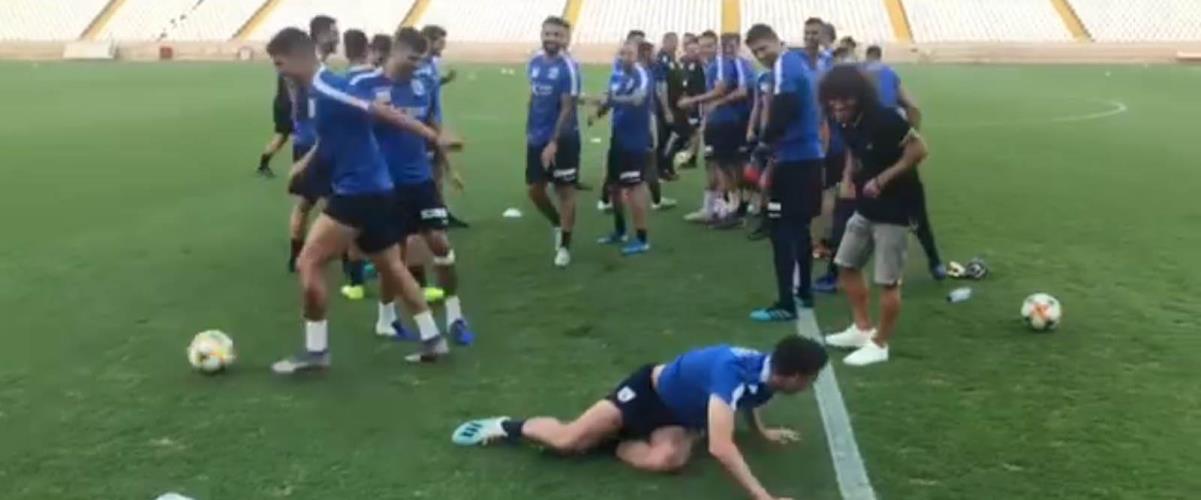 Οι υπόλοιποι ποδοσφαιριστές έδωσαν το καθιερωμένο ξύλο στους νέους καλωσορίζοντάς τους έτσι στην ομάδα.
