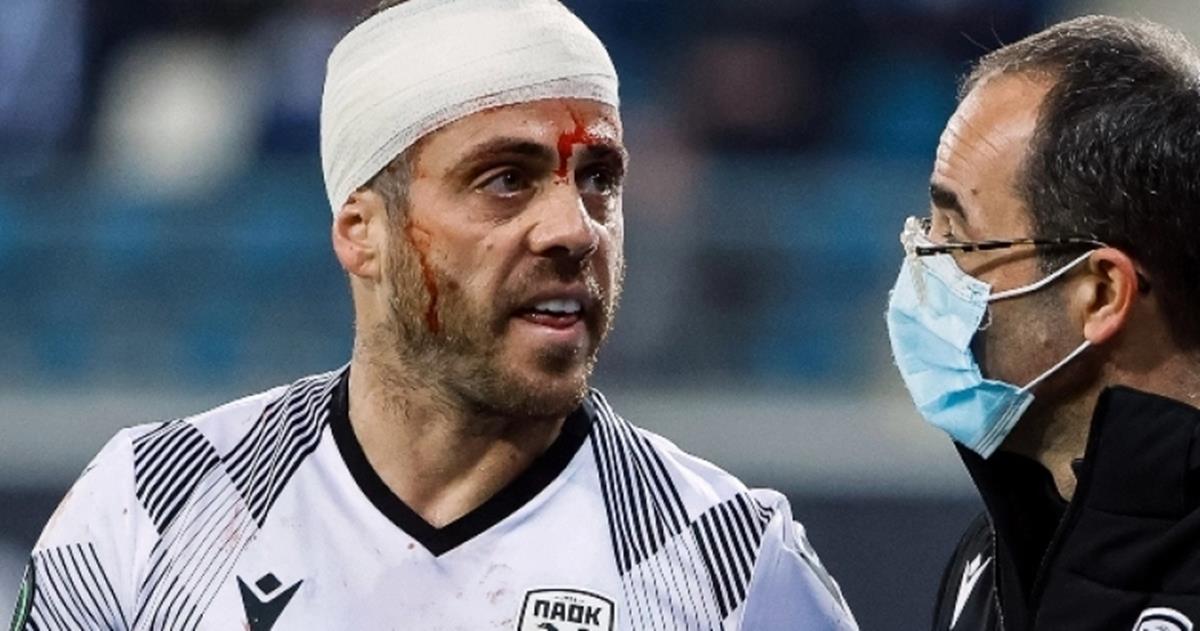 Ο Πορτογάλος αρχηγός του ΠΑΟΚ, ο οποίος τελείωσε το ματς με τη Γάνδη, ματωμένος και με χτυπημένο κεφάλι μετά τον τραυματισμό του στο 66' της αναμέτρησης όπου του έγιναν κι έξι ράμματα. Ωστόσο, δεν... συζήτησε καν το ενδεχόμενο να αντικατασταθεί.