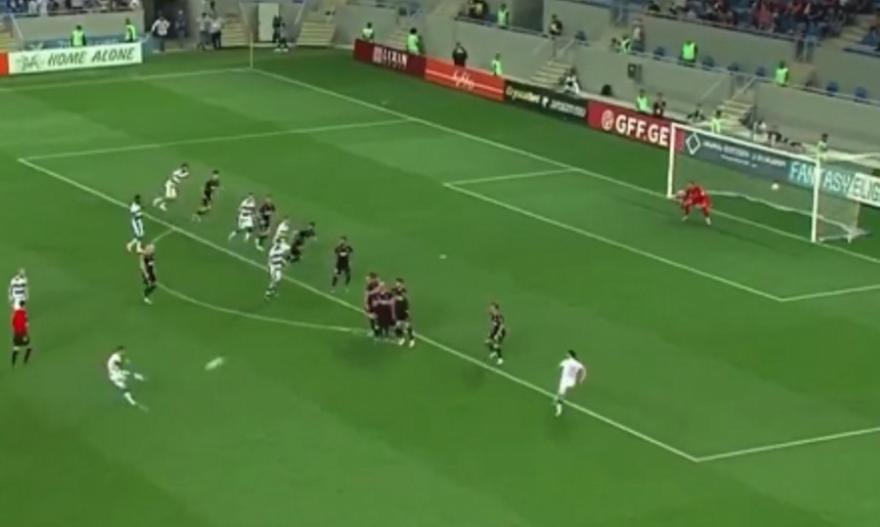 Σκόρερ, ο Βλάντιμιρ Μαμουτσασβίλι, που εξαπέλυσε ένα απίθανο ευθύβολο σουτ σε εκτέλεση φάουλ, με την μπάλα να περνά πάνω από το τείχος και να... καρφώνεται στην πλευρά της εστίας που φυλούσε ο αντίπαλος τερματοφύλακας!