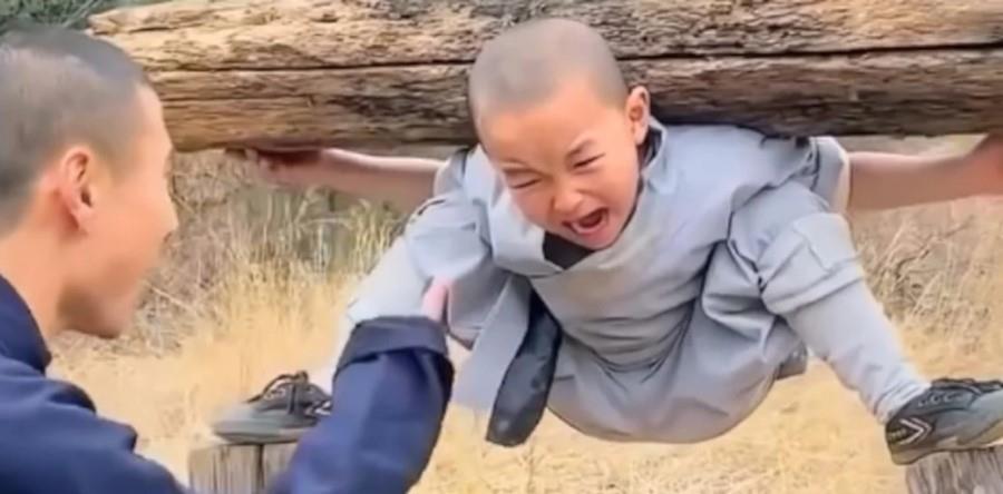 Την περασμένη Πέμπτη δημοσίευσε ένα βίντεο, που δείχνε ένα μικρό αγόρι να ισορροπεί πάνω σε δύο κορμούς, έχοντας στην πλάτη του ένα κορμό δέντρου. Ο προπονητής του τον παρακινεί να αντέξει, ενώ το παιδί ουρλιάζει.