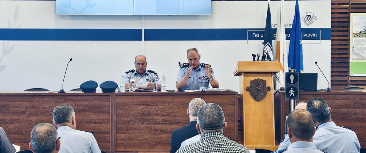 Σε σύσκεψη που πραγματοποιήθηκε σήμερα στο Πάρκο Κυκλοφοριακής Αγωγής του Αρχηγείου Αστυνομίας, την οποία συγκάλεσε ο Αρχηγός Αστυνομίας, κ. Στέλιος Παπαθεοδώρου, αξιολογήθηκαν οι οδικές συγκρούσεις που σημειώθηκαν από την αρχή του χρόνου μέχρι σήμερα και αποφασίστηκε η λήψη περαιτέρω μέτρων από πλευράς Αστυνομίας, με στόχο την πρόληψη των θανατηφόρων αλλά και σοβαρών οδικών συγκρούσεων, μεταξύ των οποίων: