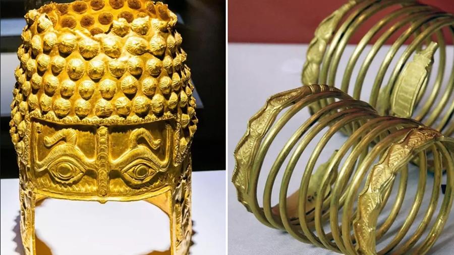 Οι δράστες, όπως αναφέρει το BBC, άρπαξαν με τρία δακικά σπειροειδή βραχιόλια αλλά και το κεντρικό κομμάτι της έκθεσης, το εντυπωσιακά διακοσμημένο χρυσό κράνος του Κοτοφενέστι, το οποίο χρονολογείται περίπου στο 450 π.Χ.