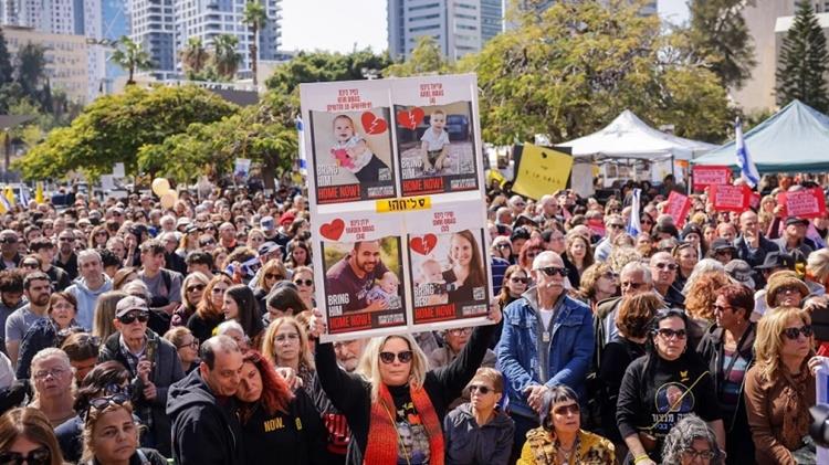 Πλήθος κόσμου συγκεντρώθηκε το πρωί της Τετάρτης στην Πλατεία Ομήρων του Τελ Αβίβ, για να παρακολουθήσει από γιγαντοοθόνη την κηδεία της Σίρι Μπίμπας και των δύο παιδιών της, της τετράχρονης Άριελ και του λίγων μηνών Κφιρ, που έχασαν τη ζωή τους κατά τη διάρκεια της ομηρείας τους στη Λωρίδα της Γάζας.