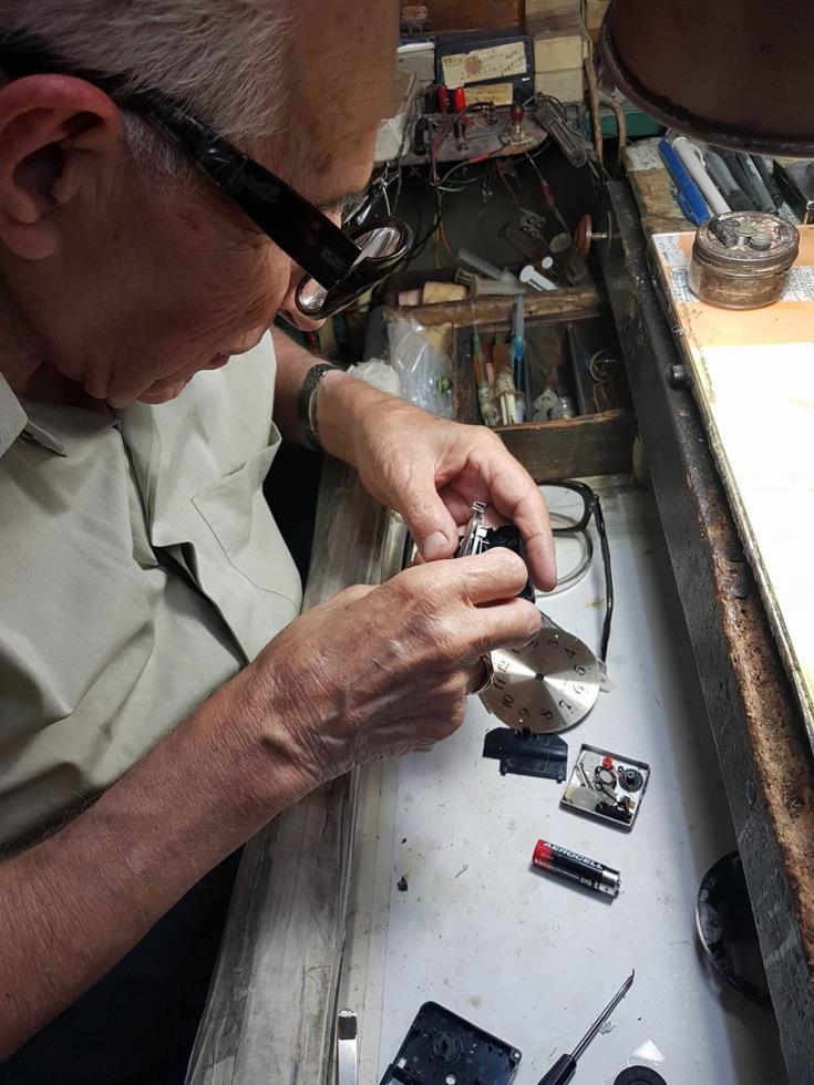«Ο παππούς μου και ο πατέρας μου ήταν και αυτοί ωρολογάδες. Θα ήταν περίεργο αν δεν ακολουθούσε κάποιος από εμάς το επάγγελμα του ωρολογά, έτσι και εγώ και τα αδέλφια μου γίναμε ωρολογάδες. Είναι δύσκολη δουλειά. Καταρχάς ένα είναι το κύριο χαρακτηριστικό μας, η υπομονή. Ασχολείσαι με μικρά, μικρά, αντικείμενα που πρέπει να συνδέσεις μεταξύ τους για να λειτουργήσουν. Εννοείται πως πρέπει να έχεις και καλό μάτι. Εγώ με τα χρόνια πέρασα τον βοηθητικό φακό από το δεξί στο αριστερό μου μάτι. Είναι πολύ δύσκολο να εργάζεσαι με τόση λεπτομέρεια. Κουράζονται πολύ τα μάτια», μου λέει ενθουσιασμένος.«Στην γειτονιά βρίσκομαι 65 ολόκληρα χρόνια και είναι πολλά ώστε να αγαπήσω αυτό το δρόμο και τους γείτονες μου. Παλαιότερα διατηρούσα ένα μαγαζί πιο κάτω.Με κάποιες αλλαγές που έγιναν στην νομοθεσία, δόθηκαν καινούργια μαγαζιά και αποφάσισα να μετακομίσω σ αυτό το γωνιακό όμορφο μαγαζί από το 1958. Εδώ εκτός από επαγγελματική νέα αρχή στάθηκε και η αφορμή για να δημιουργήσω και οικογένεια », αφού όπως αναφέρει η γυναίκα του ήταν και πελάτισσά του.