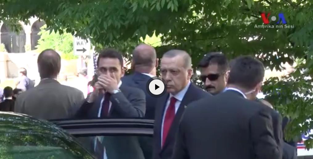 Ειδικότερα στο βίντεο που δημοσιοποίησε η τουρκική υπηρεσία της «Φωνής της Αμερικής» διακρίνεται ο φρουρός που συνομιλεί με τον Ερντογάν, ο οποίος βρίσκεται ακόμα μέσα στην προεδρική λιμουζίνα, να μεταφέρει έναν μήνυμα σε έναν άλλο αστυνομικό που βρίσκεται πιο κοντά στο πεζοδρόμιο. Ο δεύτερος άνδρας τότε τρέχει προς την πλευρά των διαδηλωτών. Ακούγονται φωνές και τότε οι άνδρες ασφαλείας του Ερντογάν ξεκινούν να καταδιώκουν και να κτυπούν αλύπητα τους διαδηλωτές.