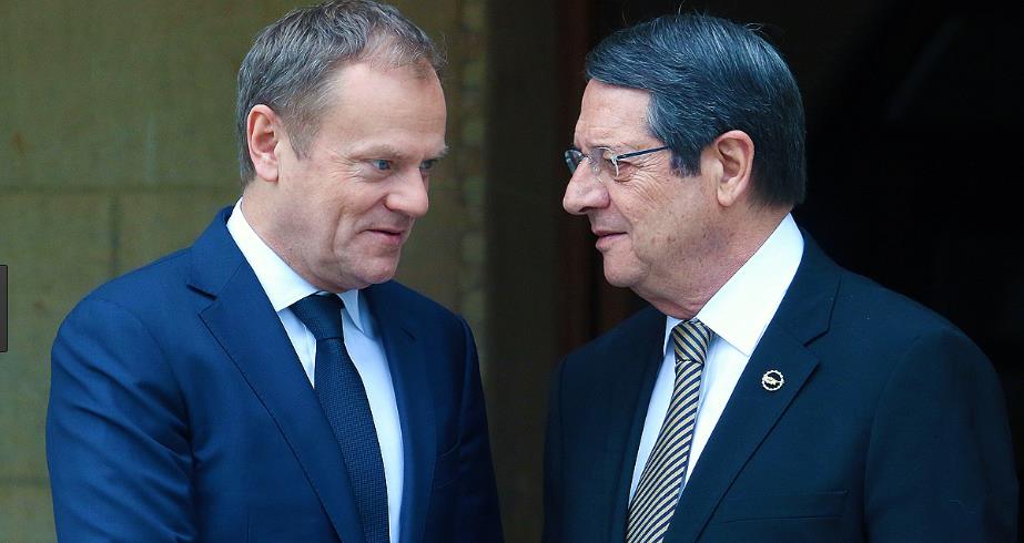 Το Κυπριακό, τις Ευρωτουρκικές σχέσεις και τις εξελίξεις στην ΑΟΖ συζήτησαν σήμερα το απόγευμα ο Πρόεδρος της Δημοκρατίας Νίκος Αναστασιάδης και ο Πρόεδρος του Ευρωπαϊκού Συμβουλίου, Ντόνλαντ Τουσκ.