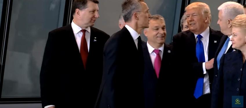 Σε βίντεο που διέρρευσε στο Διαδίκτυο, φαίνεται να σπρώχνει επιδεικτικά τον πρωθυπουργό του Μαυροβουνίου Ντούσκο Μάρκοβιτς και κατόπιν να στρώνει το σακάκι του, καθώς περνά στην πρώτη γραμμή, πιο κοντά στον γενικό γραμματέα του ΝΑΤΟ Γενς Στόλτενμπεργκ και να ποζάρει με το γνωστό του υπεροπτικό υφάκι.