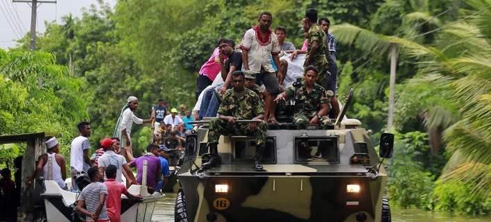 Οι αρχές διένειμαν αεροπορικώς χιλιάδες σωσίβια σε αποκλεισμένους από τις πλημμύρες.