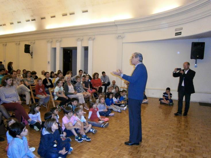 Η Πρόεδρος της ελληνικής κοινότητας Γενεύης Όλγα Tuscher Καραγιώργη, ευχαρίστησε τους δύο καλλιτέχνες που δέχτηκαν την πρόσκλησή της να παρευρεθούν στην εκδήλωση για να γιορτάσουν και να μοιραστούν μαζί το πάθος και την αγάπη τους για τον Καραγκιόζη που συνοψίζεται στους στίχους του τραγουδοποιού Σαβόπουλλου «.…..κείνο που με τρώει …κείνο που με σώζει , είναι που ονειρεύομαι σαν τον Καραγκιόζη.»