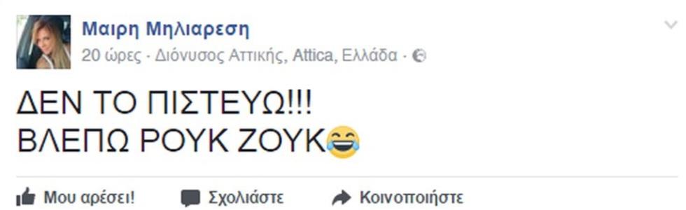 Η ίδια ωστόσο έκανε μέσω Facebook το δικό της σχόλιο με αφορμή την πρεμιέρα του παιχνιδιού γράφοντας: «Δεν το πιστεύω, βλέπω Ρουκ Ζουκ».