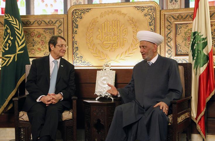 ΠτΔ προς Μουφτή Λιβάνου: Η θρησκεία ποτέ δεν υπήρξε πηγή σύγκρουσης στην Κύπρο