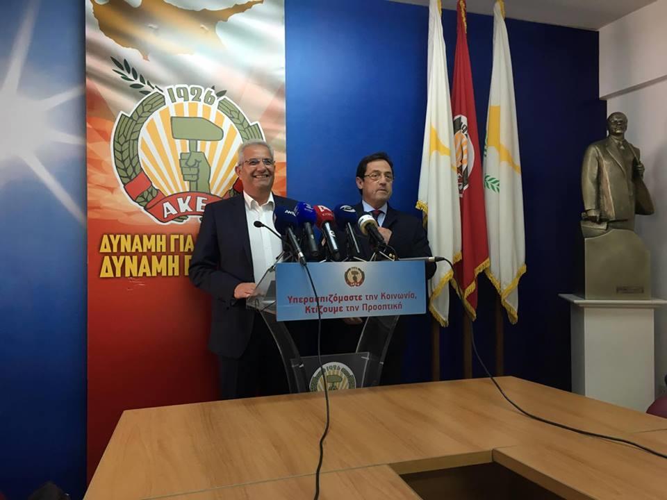 Σε δηλώσεις του ο ΓΓ του ΑΚΕΛ, Άντρος Κυπριανού, είπε ότι με τον κ. Σπανό καταρχήν συμφωνήσαμε στο Κυπριακό και σε βασικά κοινωνικοοικονομικά θέματα. Επεκτείνοντας τη συζήτηση και επιχειρώντας να ολοκληρώσουμε και να συγκεκριμενοποιήσουμε το πλαίσιο της συμφωνίας μας, φάνηκε ότι υπήρχαν ζητήματα στα οποία οι προσεγγίσεις μας ήταν τέτοιες που δεν μας επέτρεψαν να καταλήξουμε στο αμοιβαία αποδεχτό αποτέλεσμα».