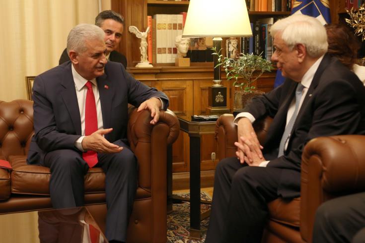 Από την πλευρά του ο πρωθυπουργός της Τουρκίας είπε ότι συμφωνεί με την τοποθέτηση του Προέδρου της Ελληνικής Δημοκρατίας και πρόσθεσε ότι «υπάρχουν θέματα για τα οποία σκεπτόμαστε με διαφορετικό τρόπο. Ωστόσο αυτά που μας ενώνουν, τα θέματα για το οποία έχουμε κοινή προσέγγιση, είναι πολυάριθμα». Ο κ. Γιλντιρίμ μετέφερε στον κ. Παυλόπουλο την επιθυμία του Τούρκου Προέδρου Ρετζέπ Ταγίπ Ερντογάν να επισκεφθεί την Ελλάδα εντός του τρέχοντος έτους.