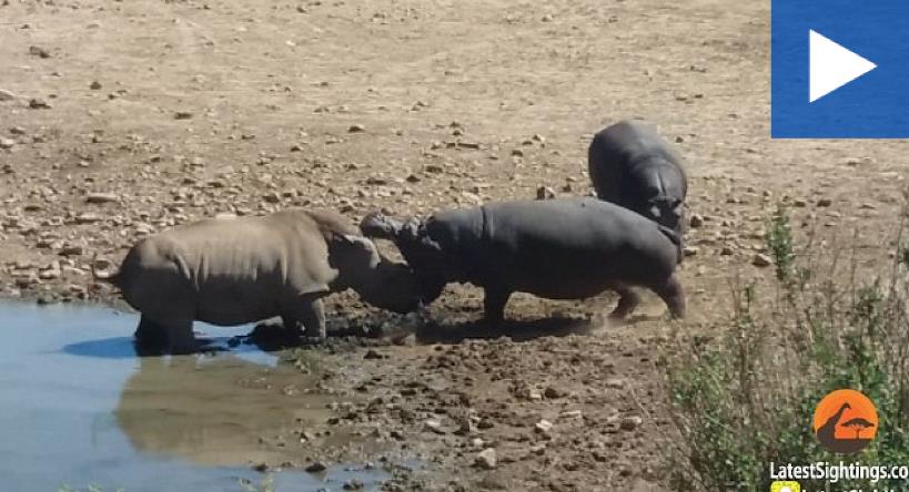 Την σπάνια στιγμή που ένας οργισμένος ιπποπόταμος επιτίθεται σε ρινόκερο επειδή αρνήθηκε να εγκαταλείψει έναν νερόλακκο εν καιρώ έντονης ξηρασίας κατέγραψε ερασιτεχνικό βίντεο σε ένα καταφύγιο άγριας ζωής στην Νότια Αφρική.