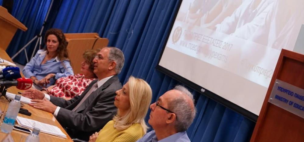 Τα αποτελέσματα των παγκύπριων εξετάσεων του 2017 για τα ανώτερα και ανώτατα εκπαιδευτικά ιδρύματα της Κύπρου και τις στρατιωτικές σχολές της Ελλάδας ανακοίνωσε πριν από λίγο ο Υπουργός Παιδείας και Πολιτισμού Κώστας Καδής.