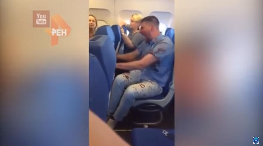 Ο άντρας καταγράφηκε σε βίντεο από συνεπιβάτες του κυριολεκτικά εκτός ελέγχου, ιδιαίτερα ζαλισμένος και με το κεφάλι του ματωμένο. Μάλιστα, κάποια στιγμή, εκνευρίζεται και αρχίζει να χτυπά με μανία το μπροστά κάθισμα, ουρλιάζοντας ταυτόχρονα.