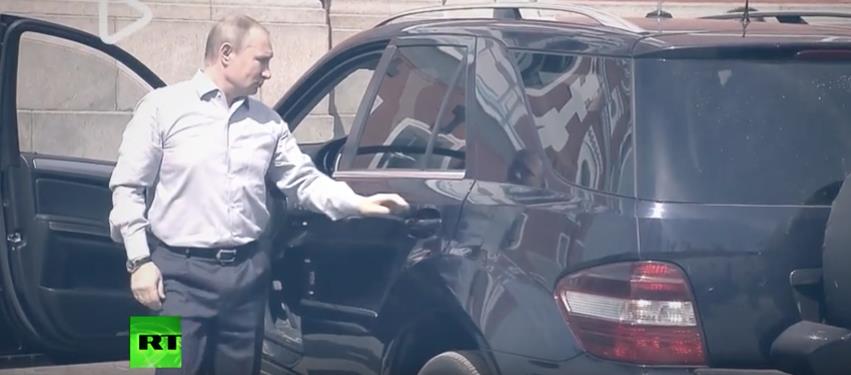 Σε βίντεο που δημοσιοποιήθηκε από επίσημες πηγές, ο Ρώσος πρόεδρος φαίνεται να βρίσκεται στο τιμόνι μιας Mercedes ML,την οποία παρκάρει στο μοναστήρι. Βγαίνοντας, πηγαίνει και ανοίγει την πίσω πόρτα- και φαίνεται ένα κομμάτι κόκκινου υλικού και ένα χέρι που δείχνει κάτι- με τον Ρώσο πρόεδρο να κλείνει την πόρτα αμέσως μετά.