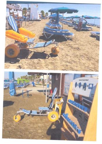 Τις φωτογραφίες δημοσίευσε η Οργάνωση Παραπληγικών Κύπρου η οποία ενημερώθηκε σήμερα από το κοινοτικό συμβούλιο Βορόκλινης ότι στην παραλία 'Γιαννάδες' (περιοχή Χρυσό Ψάρι) έχουν κατασκευαστεί ράμπες, τοποθετήθηκε ξύλινος διάδρομος στην παραλία και αγοράστηκε τροχοκάθισμα θάλασσας που επιπλέει επίσης.