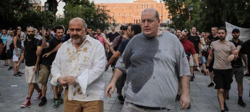 Όπως μαρτυρά και η φωτογραφία, που πολύ γρήγορα έκανε το γύρο του διαδικτύου, οι δυο βουλευτές του ΣΥΡΙΖΑ, ήταν ανεπιθύμητοι στη συγκέντρωση. Πολλοί ήταν οι χρήστες του Τwitter που σχολίασαν με χιούμορ την επίθεση με καφέδες και νερά εναντίων των δυο βουλευτών. Ενώ αρκετοί ήταν και εκείνοι που μέσα από τις αναρτήσεις τους καταδίκασαν την επίθεση.