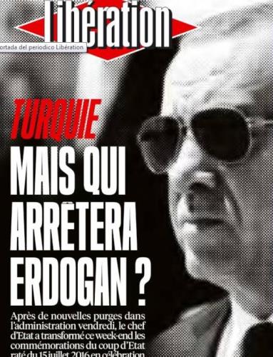 «Μα ποιος τέλος πάντων θα σταματήσει τον Ερντογάν;» είναι ο πρωτοσέλιδος τίτλος της εφημερίδας Liberation, η οποία έχει τετρασέλιδο αφιέρωμα στην Τουρκία.