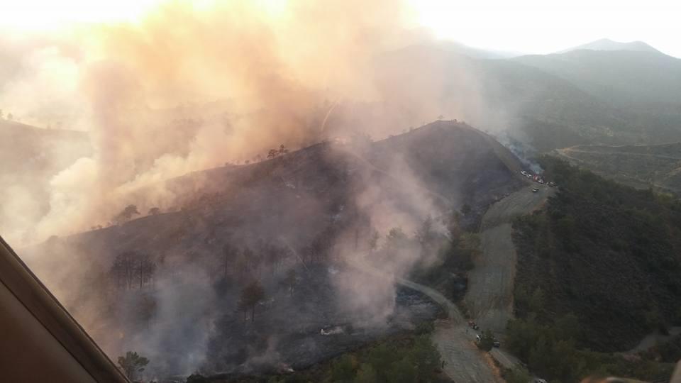 Μάχη με τις φλόγες για τουλάχιστον 4 ώρες έδωσαν το απόγευμα της Τετάρτης τα εναέρια μέσα πυρόσβεσης της Κυπριακής Δημοκρατίας.
