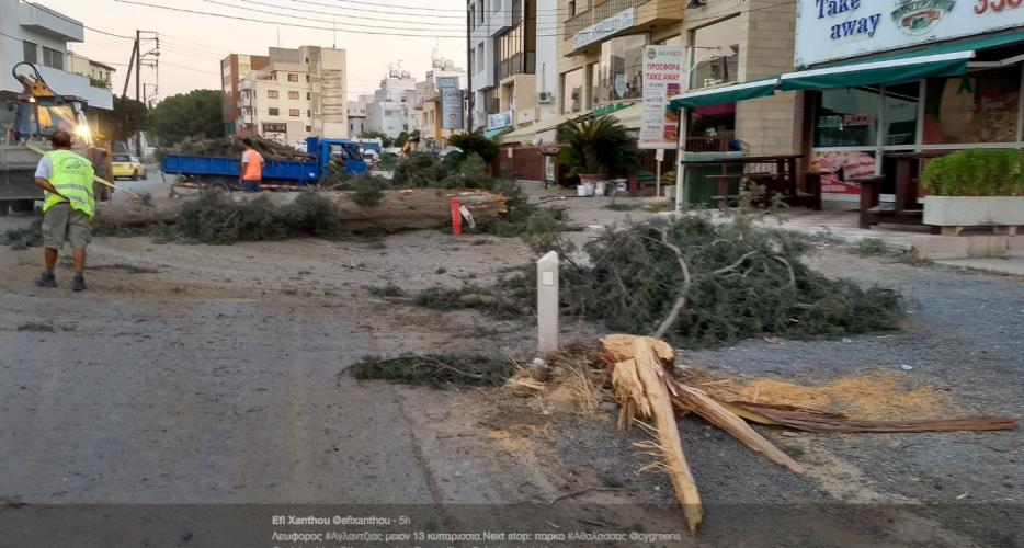 Δεκτρία κυπαρίσσια έκοψαν οι υπηρεσίες οδικών έργων από τη λεωφόρο Αγλατζιάς, προκειμένου να προχωρήσουν σε διαπλάτυνση του δρόμου.
