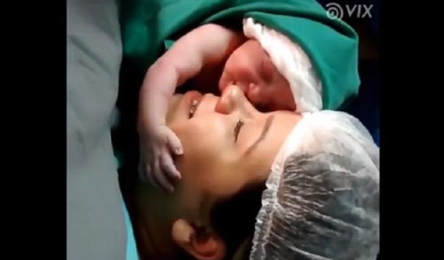 Viral έγινε το βίντεο που δείχνει ένα νεογέννητο κοριτσάκι να έχει κολλήσει το προσωπάκι της στο μάγουλο της μαμάς της, αλλά να αγκαλιάζει και με το χεράκι της το πρόσωπο της μαμάς της και να μη λέει να το αφήσει.