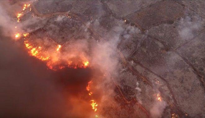 BINTEO: Εικόνες καταστροφής από τα φλεγόμενα Κίθυρα καταγράφει βίντεο drone