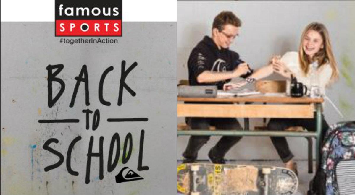 Η Famous Sports καλωσορίζει τη νέα σχολική χρονιά με μοναδικά νέα κομμάτια από τα γνωστά και αγαπημένα μας brands Reebok, Adidas, Asics, Speedo, Champion, Bodytalk, Quiksilver, Roxy, DC, Converse και New Balance, καθώς και από τη δική της… Famous Sports συλλογή! Στα καταστήματα της αλυσίδας σε όλες τις πόλεις θα βρείτε όλα όσα χρειάζεστε για τη φετεινή σχολική χρονιά, ντύνοντας τα παιδιά σας με την ασυναγώνιστη ποιότητα που είναι πια συνώνυμη της Famous Sports.