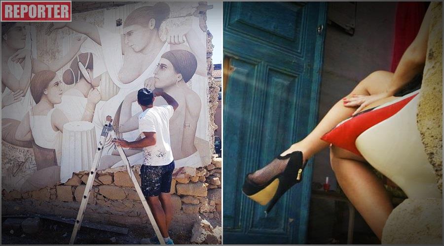 Το έργο στον τοίχο απεικονίζει, ιέρειες της θεάς Αφροδίτης , ιερόδουλες στο επάγγελμα σύμφωνα με την μυθολογία και δεν είναι καθόλου τυχαίο το γεγονός ότι την ζωγράφισε ακριβώς απέναντι από τα «κόκκινα φανάρια» της παλιάς πόλης της πρωτεύουσας.