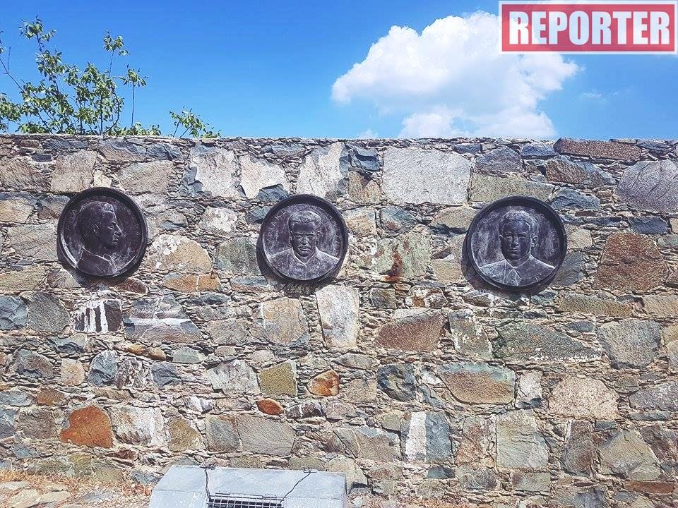 Πιο δίπλα, στο πετρόκτιστο περιτείχισμα που βρίσκεται γύρω από το σημείο όπου έχει κτιστεί το άγαλμα της Μάνας, βρίσκονται τρεις μορφές νέων ανδρών. Οι μορφές απεικονίζουν τρείς ήρωες του απελευθερωτικού αγώνα του 1955- 59. Τον Νίκο Γεωργίου, τον Κυριάκο Μάτση και τον Μιχάλη Καραολή.