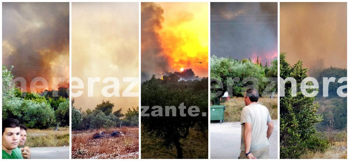 Αυτόπτες μάρτυρες να αναφέρουν ότι άκουσαν εκρήξεις από μπουκάλες υγραερίων που βρίσκονται σε εστιατόρια της περιοχής. Οι ίδιες πηγές σημειώνουν ότι η φωτιά έχει περικυκλώσει το μοναστήρι του Αγίου Διονυσίου.
