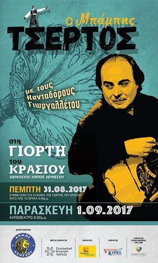 Ο Μπάμπης Τσέρτος μαζί με τους Κανταδόρους Γιωργαλλέτου συμμετέχουν στα εγκαίνια της Γιορτής την προσεχή Πέμπτη 31/8, αλλά και σε μία πλήρη συναυλία στο Κηποθέατρο την επομένη, την Παρασκευή 1 Σεπτεμβρίου.